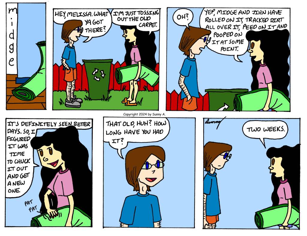 Midge Cartoon–Throwing Out the Carpet March 27, 2026March 23, 2026 ~ sunnyillustrator Share this:Tweet Share on Bluesky (Opens in new window) Bluesky Like Loading... Related Published by sunnyillustrator View all posts by sunnyillustrator